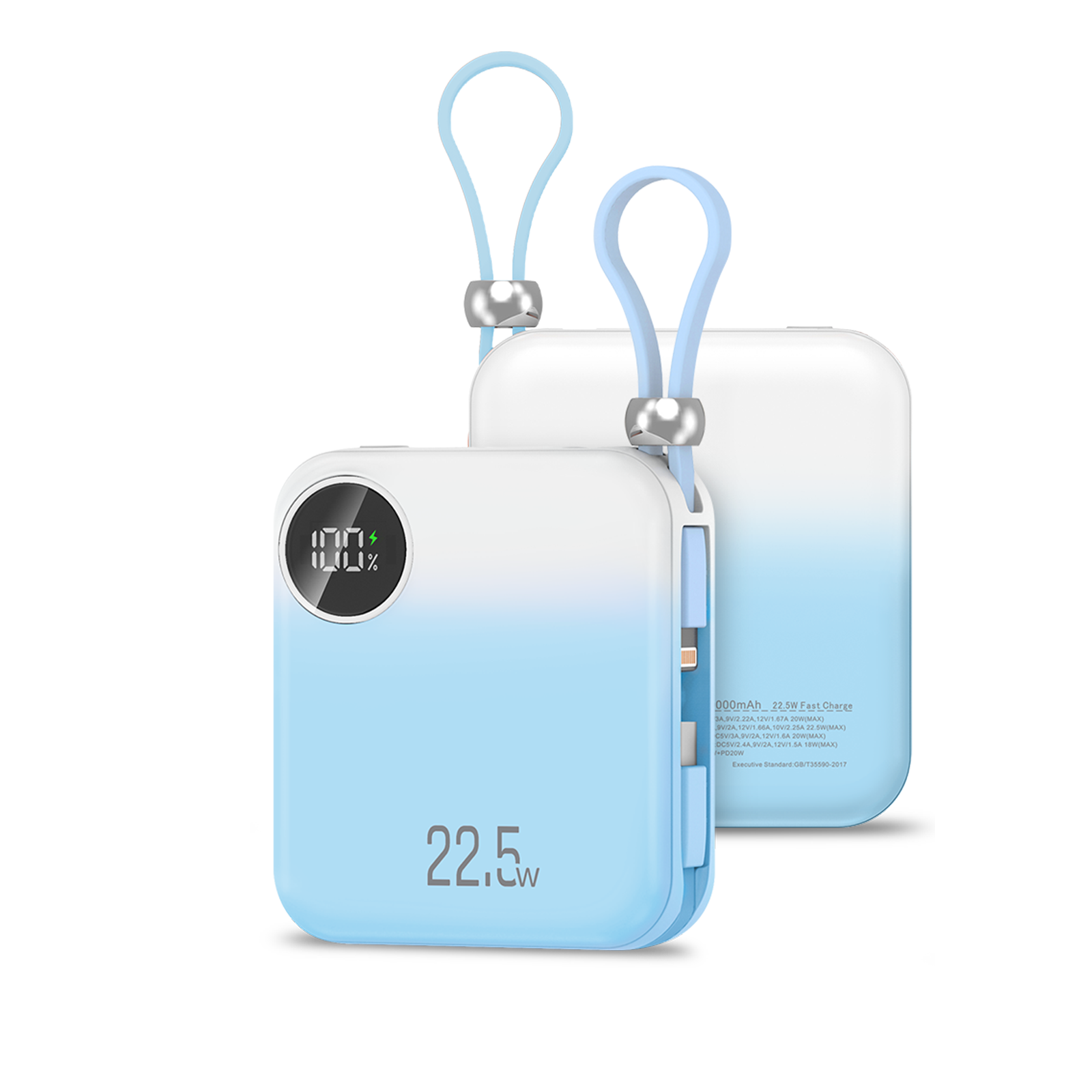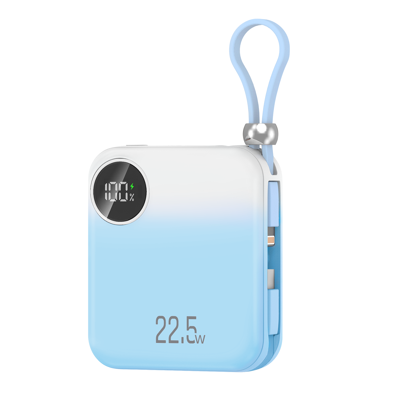 CLIPTEC 10000MAH 22.5W+PD20W FAST CHARGING MINI POWER BANK W BUILT-IN LIGHTNING&TYPE-C CABLE -BLUE