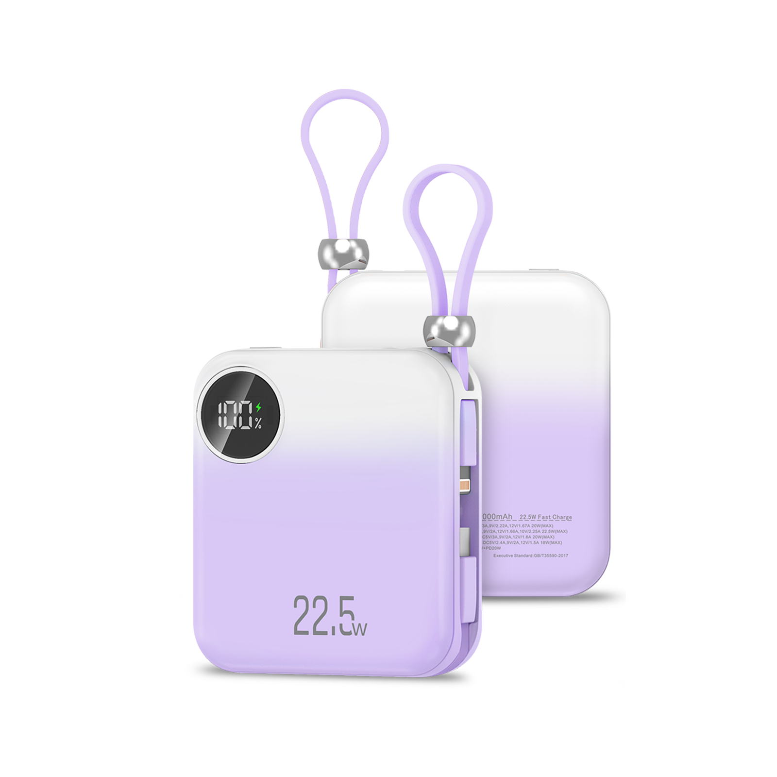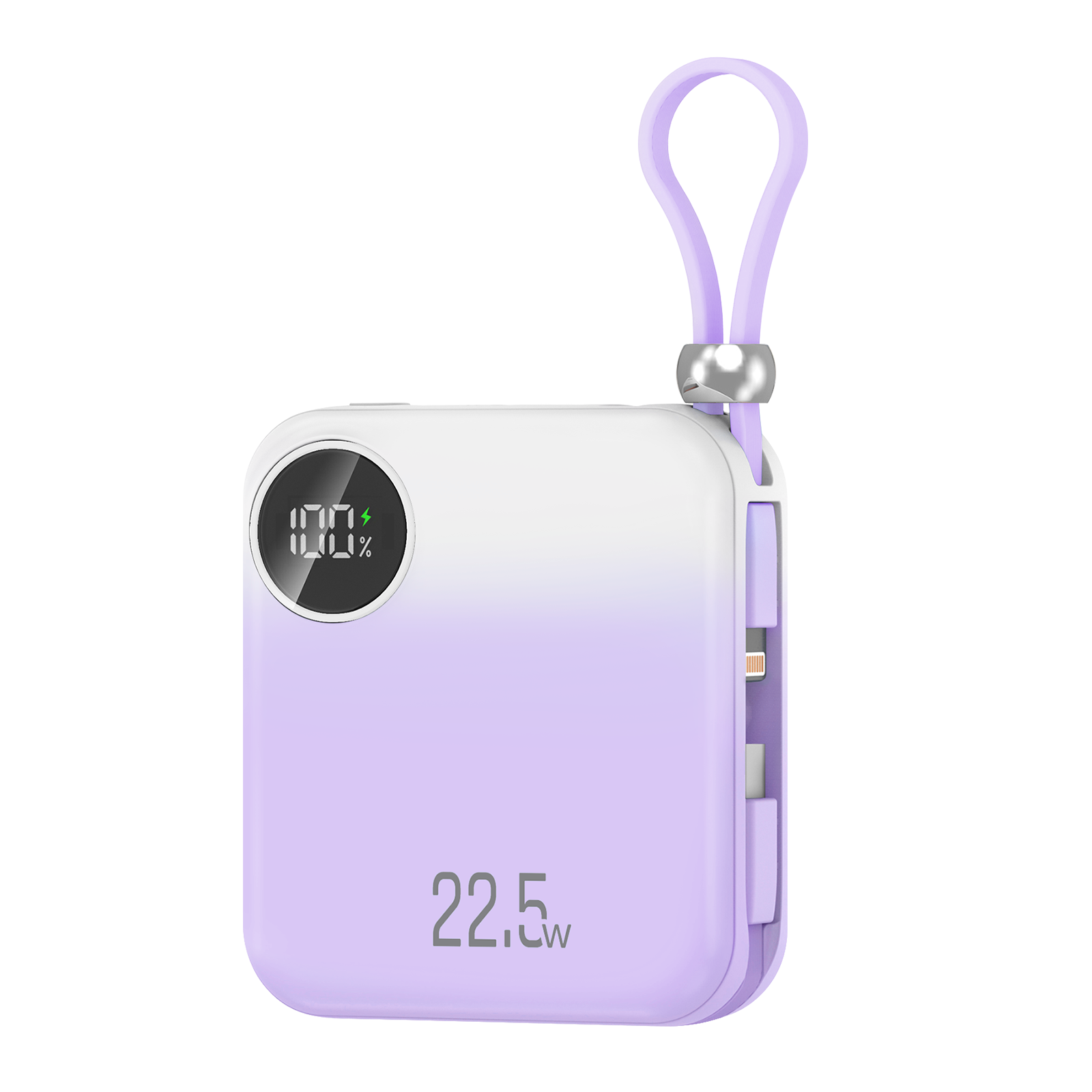 CLIPTEC 10000MAH 22.5W+PD20W FAST CHARGING MINI POWER BANK W BUILT-IN LIGHTNING&TYPE-C CABLE -PURPLE