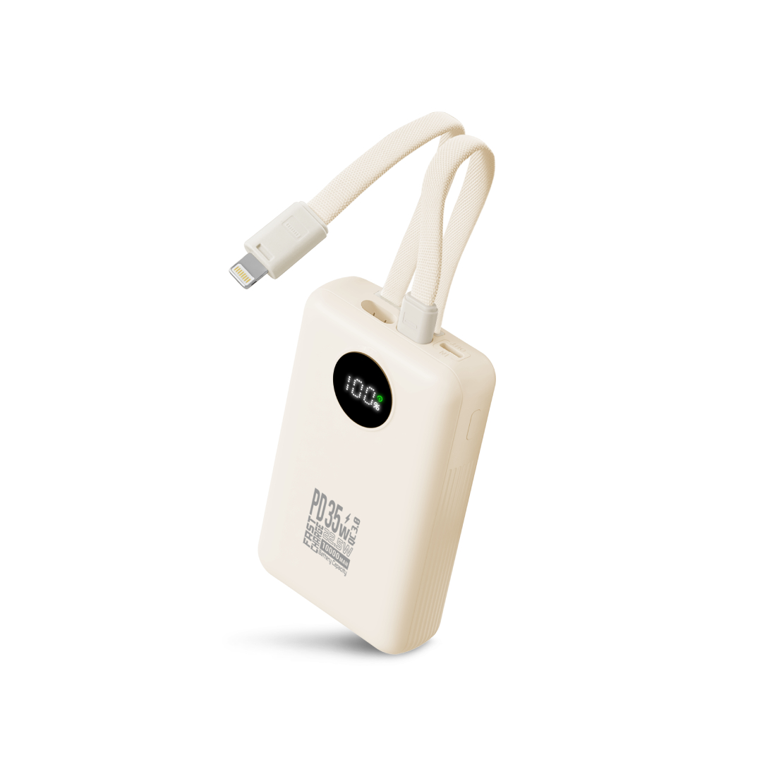 CLIPTEC 10000MAH 22.5W+PD20W FAST CHARGING MINI POWER BANK W BUILT-IN LIGHTNING&TYPE-C CABLE - BEIGE