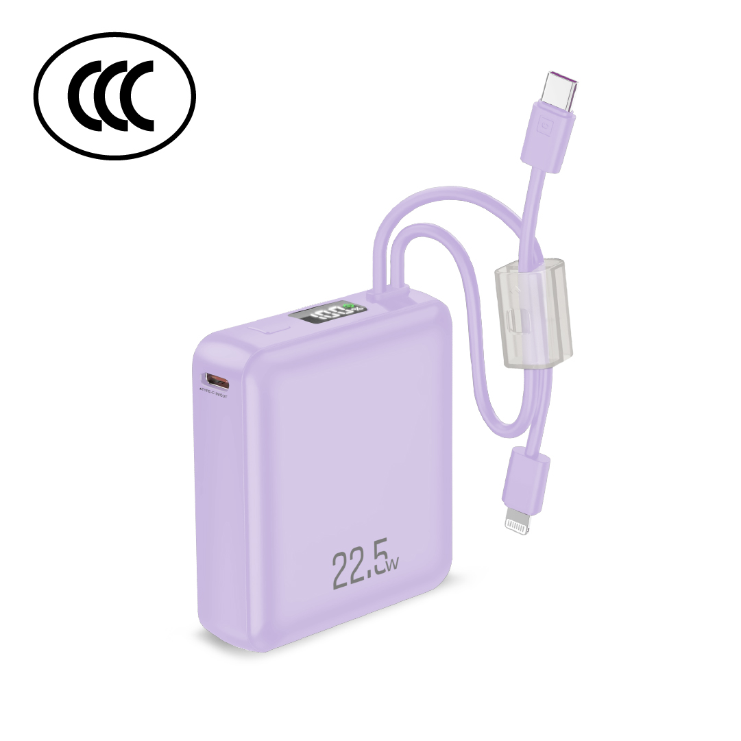 CLIPTEC MPB238 10000MAH 22.5W+PD20W FAST CHARGING MINI POWER BANK WITH CABLE - PURPLE (CCC)