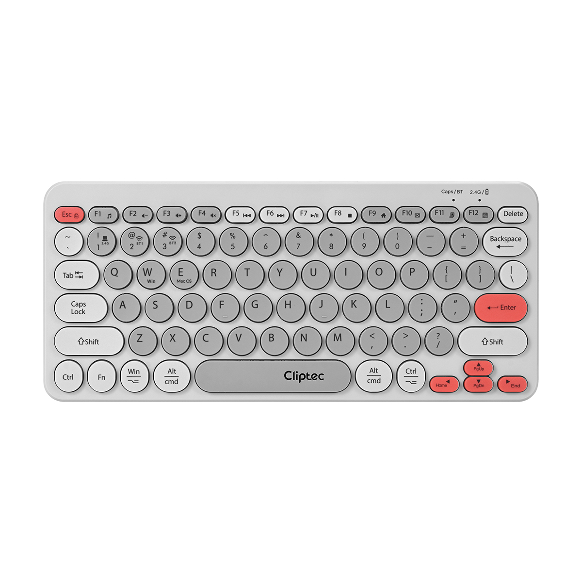 CLIPTEC RZK530 DUAL MODE RECHARGEABLE WIRELESS MULTIMEDIA SILENT KEYBOARD (DUALCONN) - GREY