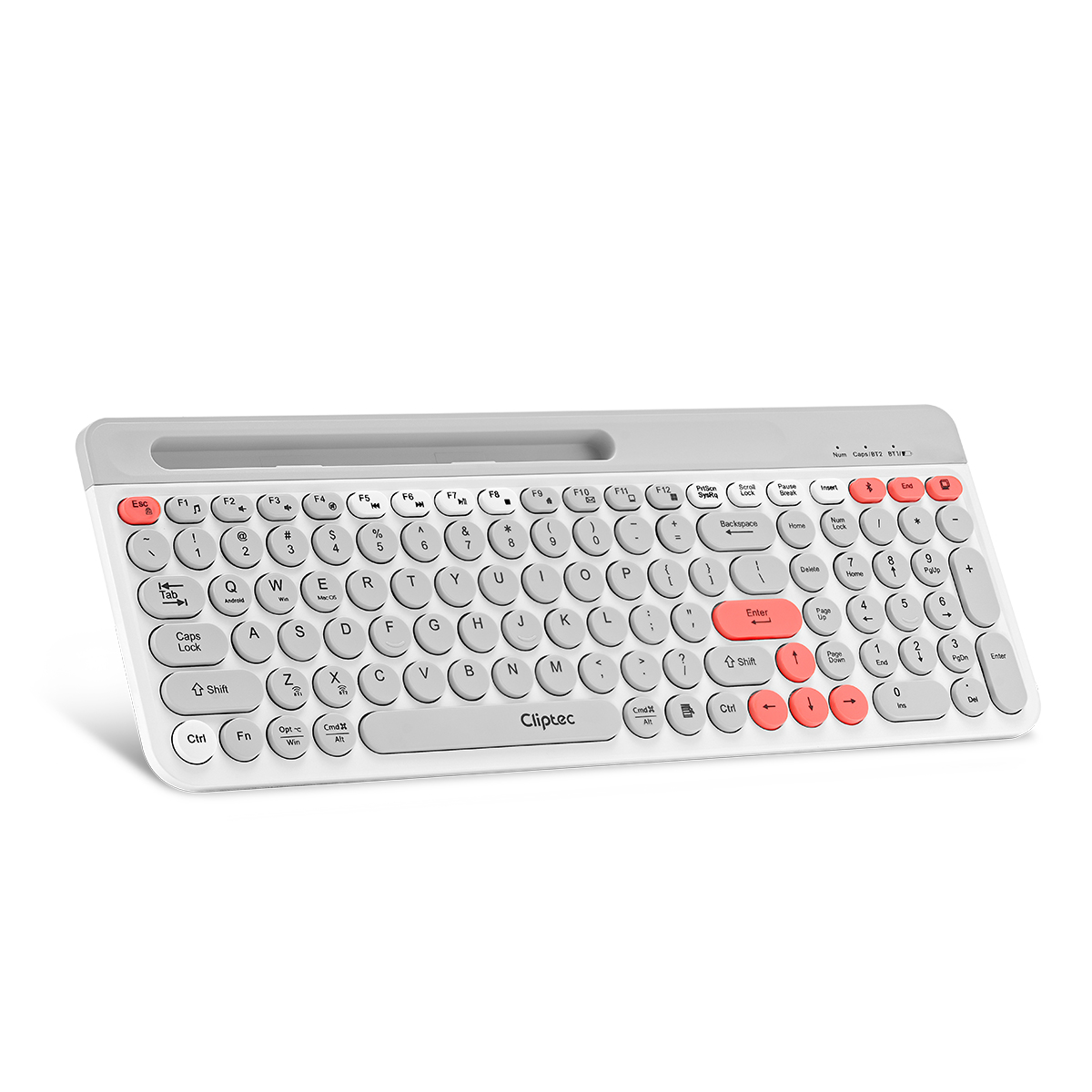 CLIPTEC RZK531 DUAL MODE RECHARGEABLE WIRELESS MULTIMEDIA KEYBOARD W PHONE SLOT (DUALCONN2) - WHITE