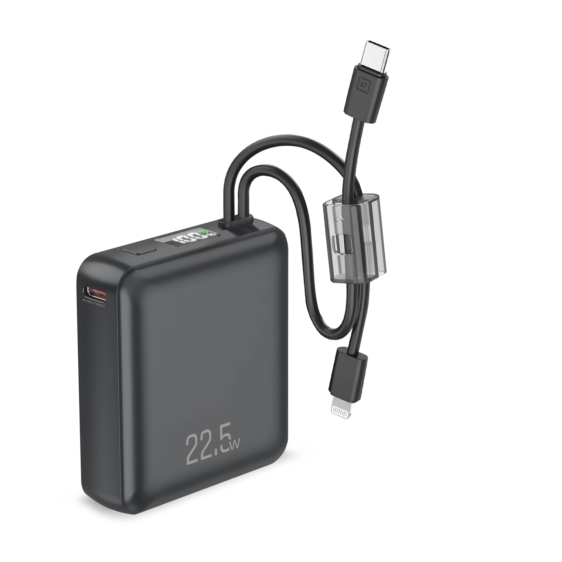 CLiPtec M-series MPB235 10000mAh 22.5W+PD20W Fast Charging Power bank with built-in Lightning and Type-C cable is a fast-charging with 4 outputs - USB-A, Type C , Type-C cable and Lightning cable technology allows you to charge your smartphone and tablet. The compact and durable design makes it convenient to charge your devices while on the go. You’ll now have more power, more freedom in the traveling road and more convenience than ever before to keep your device powered and charged. MPB235 is a high compact grade A 10000mAh lithium Polymer battery, which can prevent over charge and discharge, short circuit, over current and other abnormal conditions, bring more safety.