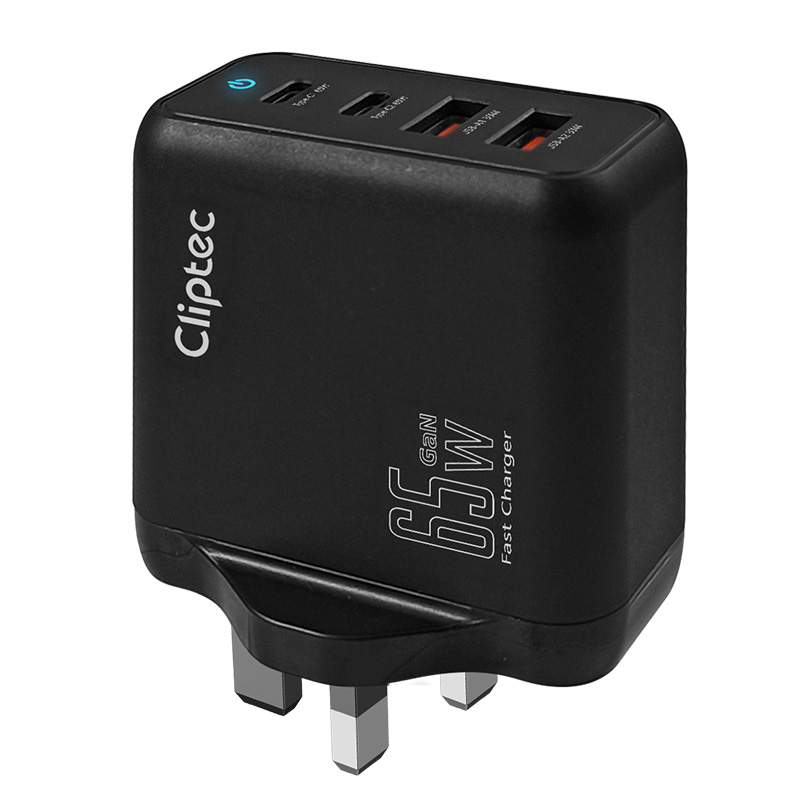 CLiPtec 65W GaN PD+QC3.0 4 Ports Super Quick Charger (2C2A)