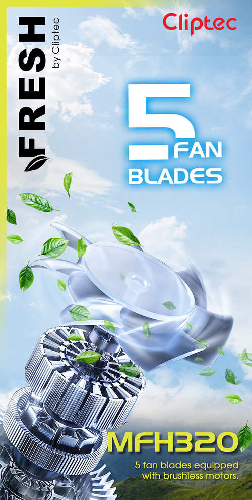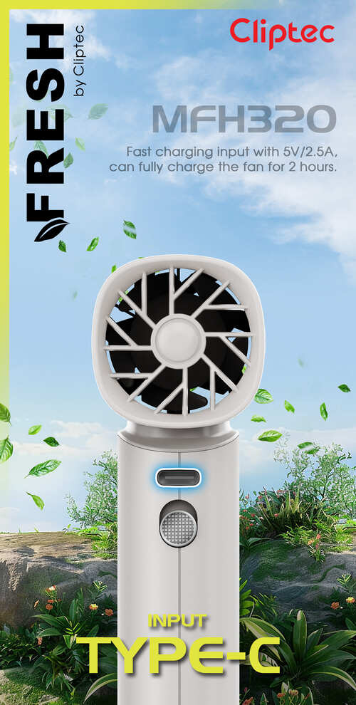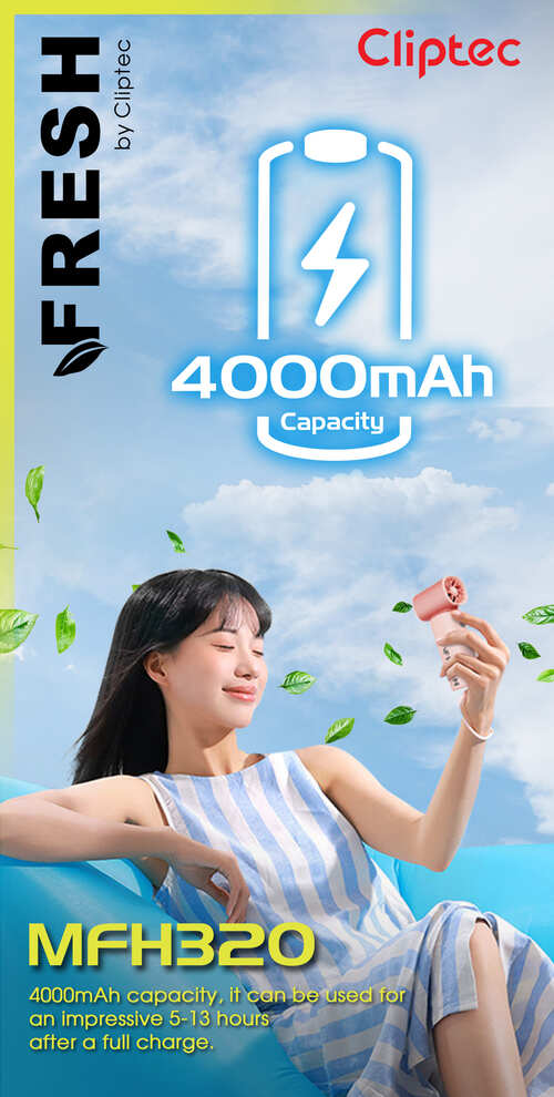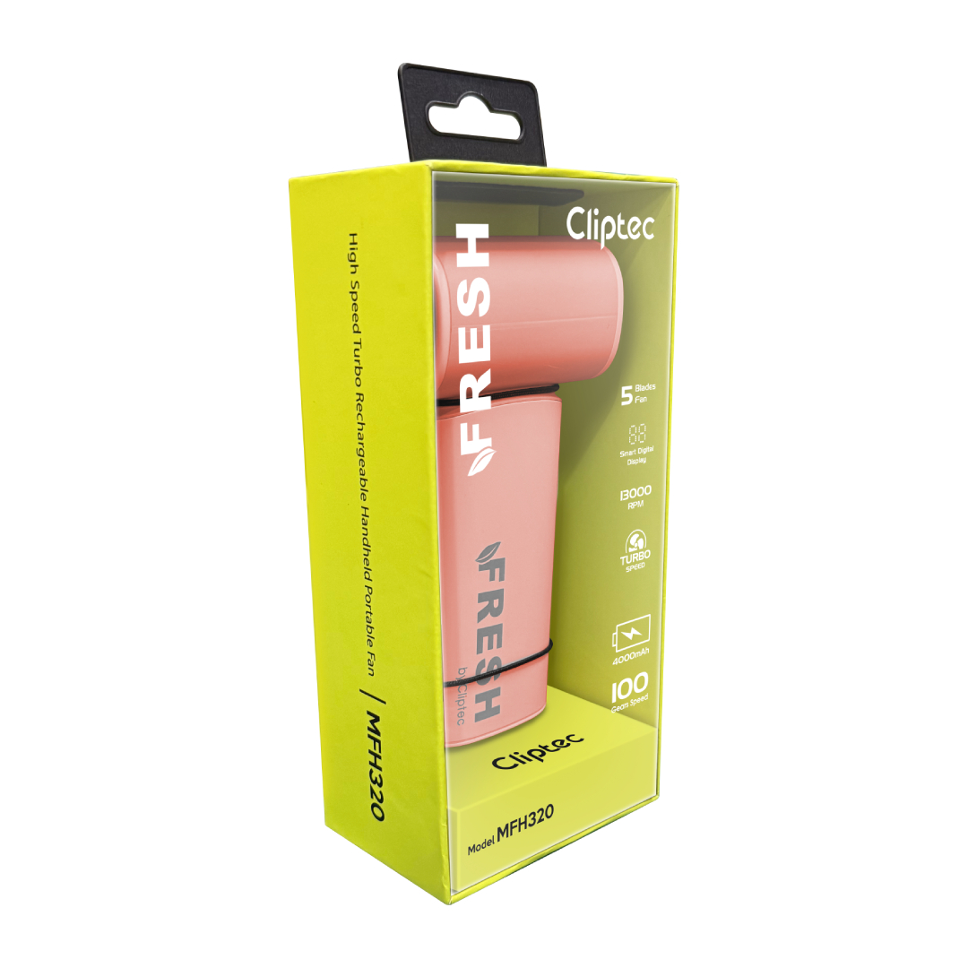 The M-Series MFH320 High speed Turbo rechargeable portable fan is the portable fan features a 5 fan bleads and brushless motor that provides superior power and durability, greatly enhancing the product's lifespan. Powerful brushless motor with a speed of up to 13,000 RPM. This portable cooling fan can release even more powerful wind power. Equipped with a 4000mAh battery, this portable fan supports 5V/2A charging, taking only 2 hours to fully charge, and providing up to 10 hours of usage time. When used at the highest speed 100, the operating time is approximately 2 hours, while at the lowest speed 1, the operating time extends to about 13 hours. The MFH320 portable fan can be charged using a USB interface, laptop, mobile power bank, or charger, making it ideal for on-the-go charging.