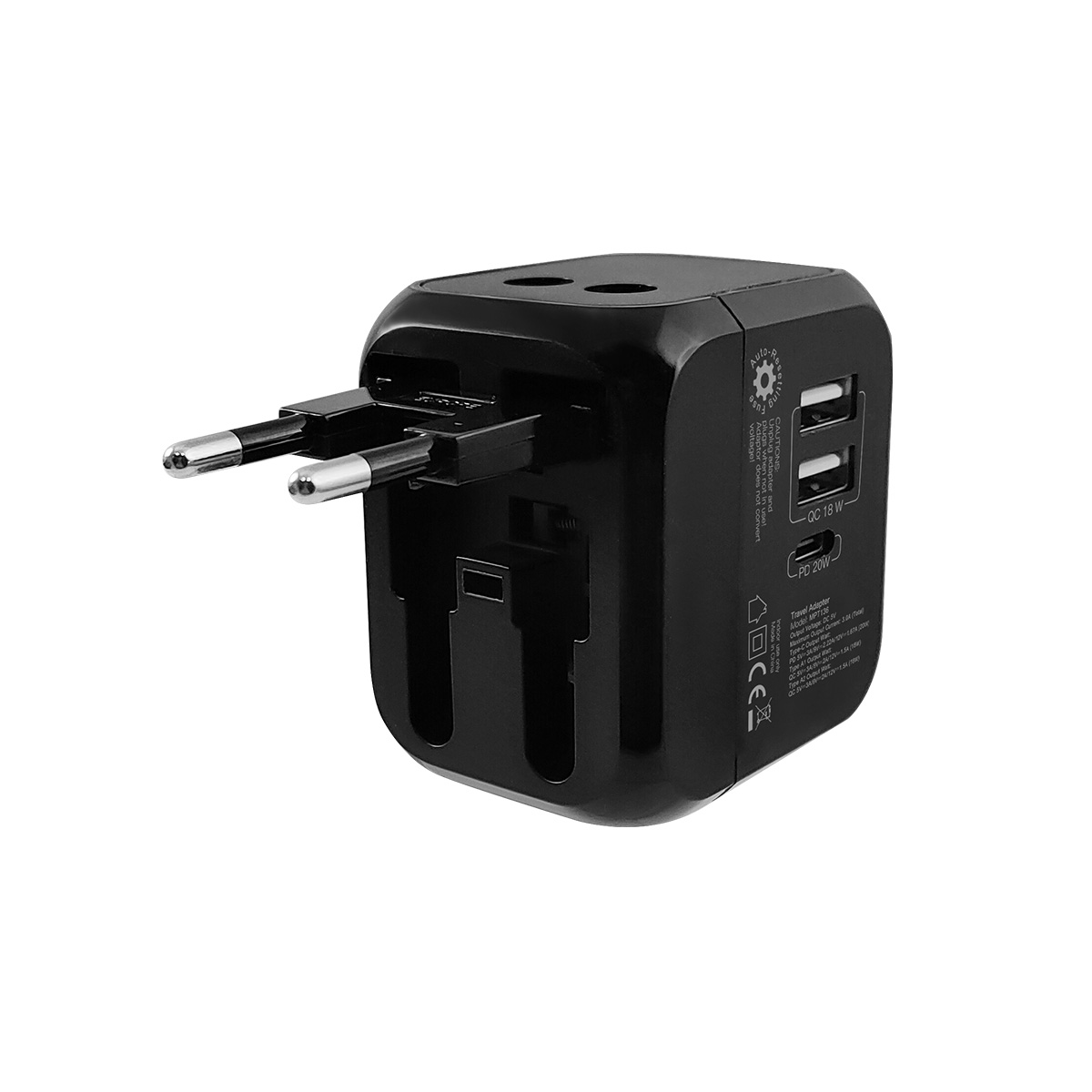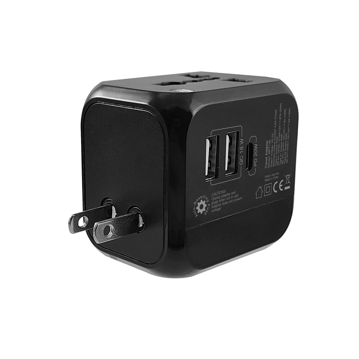 CLiPtec MPT136 QC18W+PD20W Fast Charging Universal Travelling Plug Adaptor is a compact one piece unit with four international adaptors for use in more than 200 countries and the QC 18W 2 USB ports and PD20W Type C provides a total output current 3.0A(Max output), it can be used to recharge your USB devices like tablet, smartphone, mobile phone, digital camera and more via the attachable USB ports. CLiPtec MPT136 is very easy and safe to use. Press the Safety Release Button and simply pull the pin selector for the specific region and there you go!