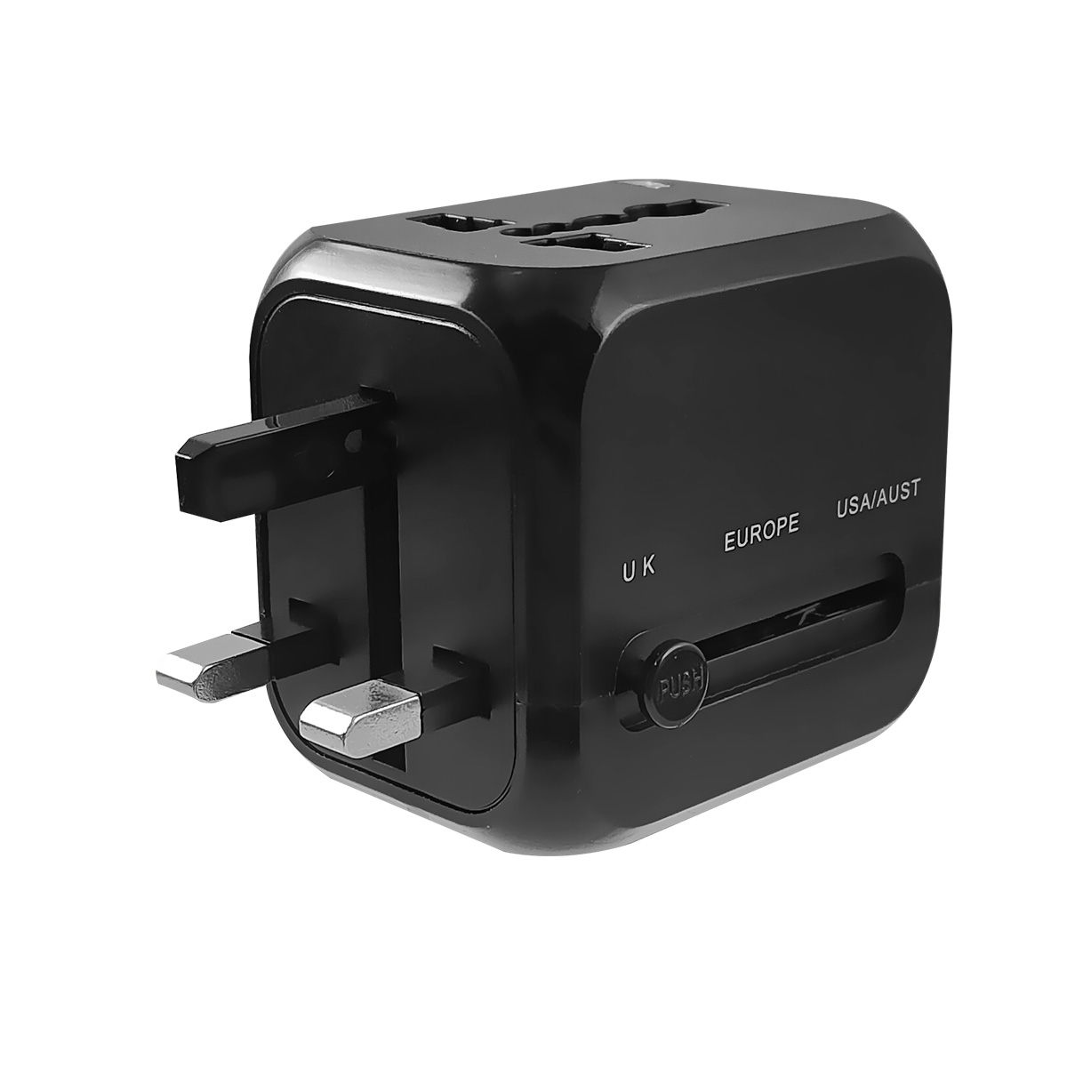 3. For US/ JAPAN/ CHINA/ AUST/ THAILAND, move the button to USA/ AUST position. The plug will flip out and swivel the plug to the angel you want.