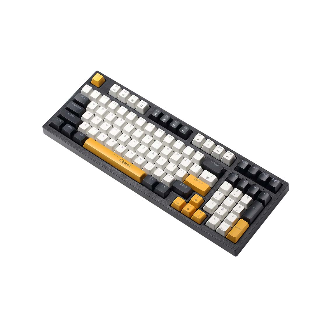 CLiPtec RGK933 USB Mechanical Illuminated Mechanical Gaming Keyboard – Attack97 is a Mechanical gaming keyboard which combines solid profile ABS top cover finish and colourful keycaps. It is constructed with red switches with 50 million times Keystroke lifespan construction with double injection for keycap. 2 level adjustable stand is installed at the bottom of the keyboard which can adjust the angle of the keyboard to fit their requirements and the palm rest to give user hands a rest while dominating the game.