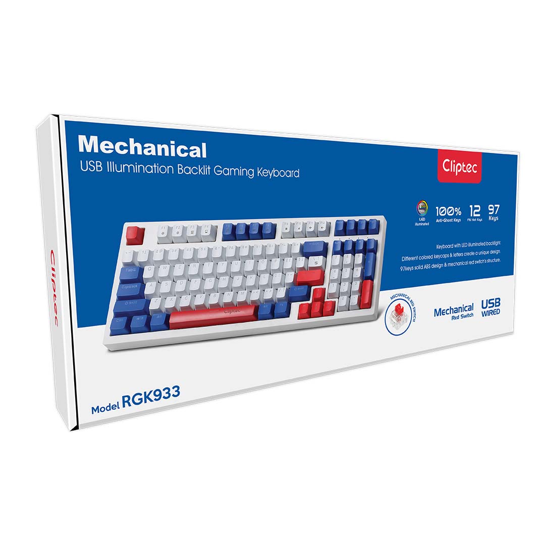 CLIPTEC RGK933 USB MECHANICAL ILLUMINATION BACKLIT GAMING KEYBOARD (ATTACK97) - WHITE/BLUE