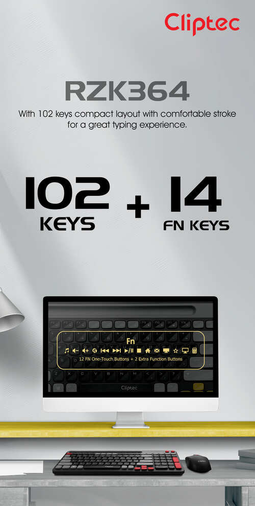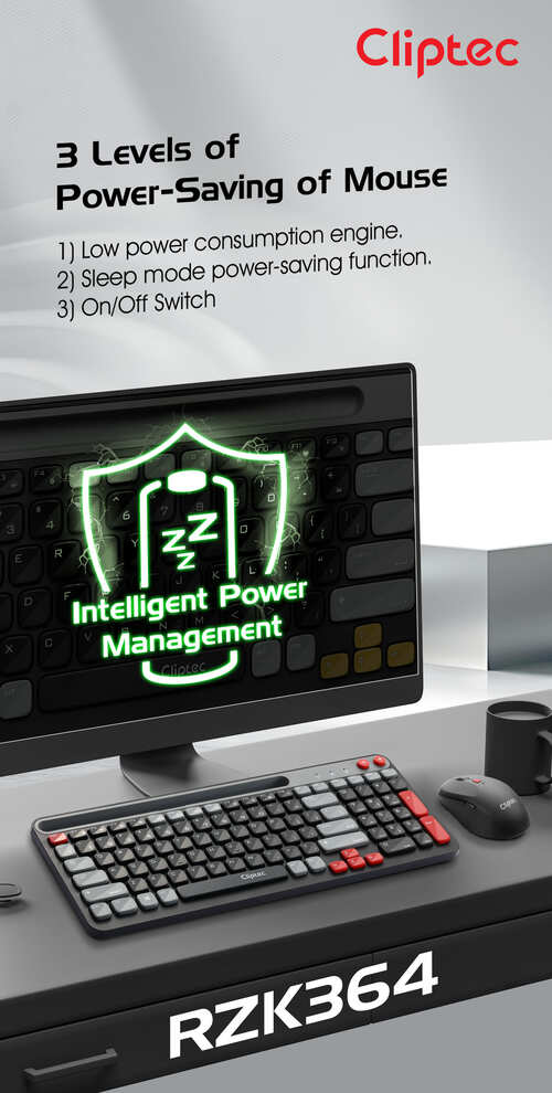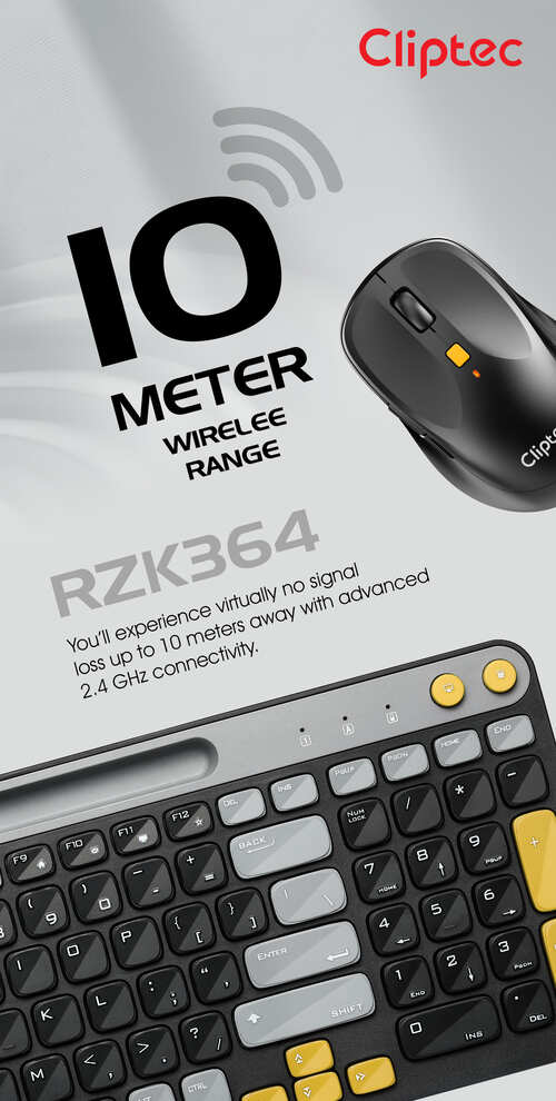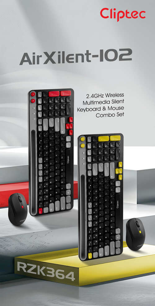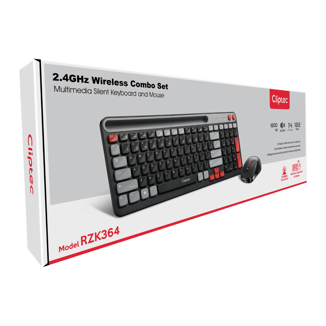 The CLiPtec RZK364 2.4ghz Wireless Multimedia Silent Keyboard and Mouse Combo set – AirXilent-100 is a practical combination of compact wireless keyboard and silent wireless mouse. It redefines the meaning of combining style and simplicity. The anti-interference function offers reliable 2.4GHz transmission and longer operational distance.
