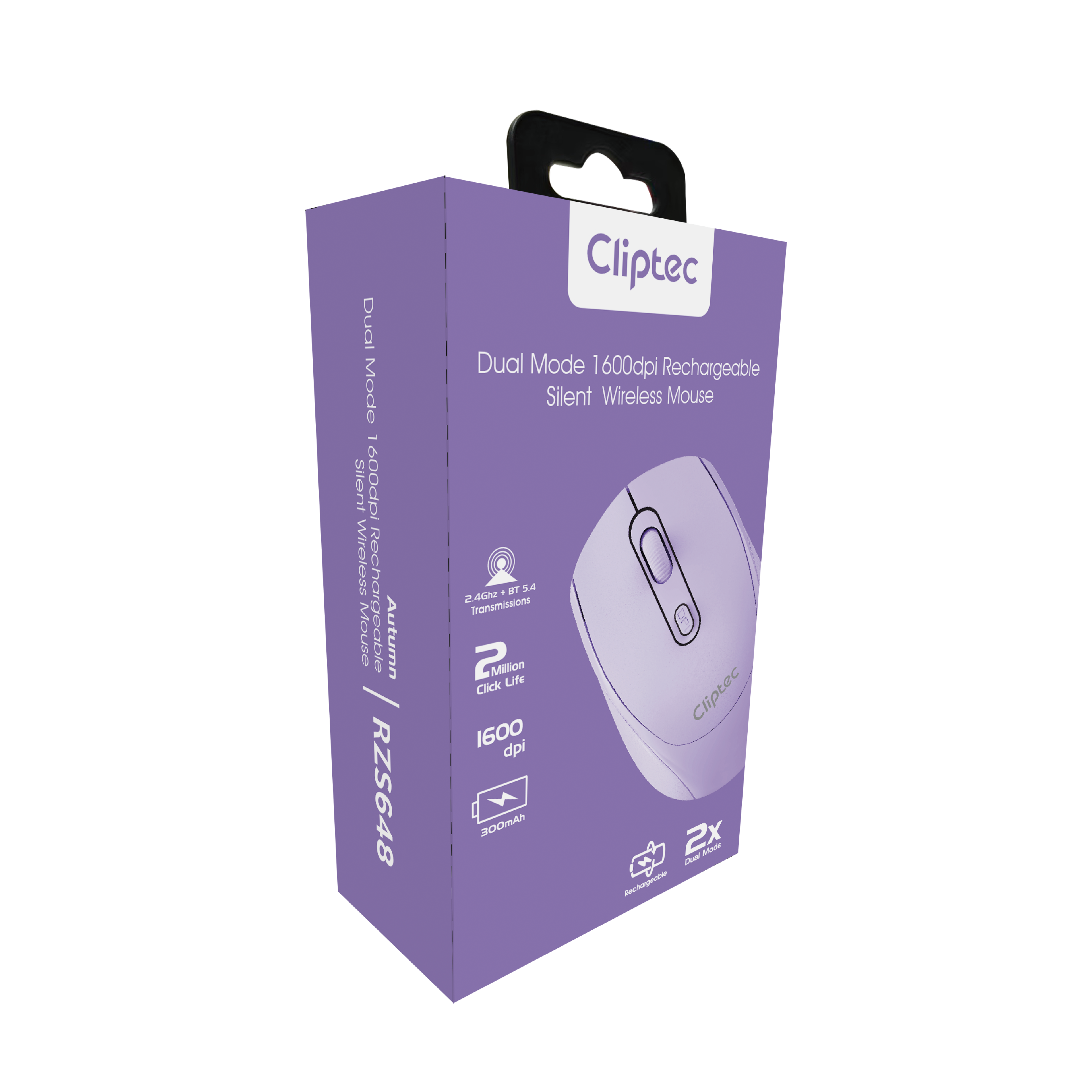 CLIPTEC RZS648 DUAL MODE 1600DPI RECHARGEABLE SILENT WIRELESS MOUSE (4 SEASONS) - AUTUMN PURPLE