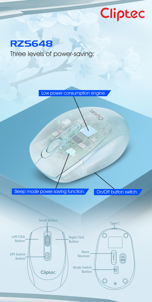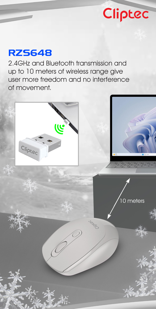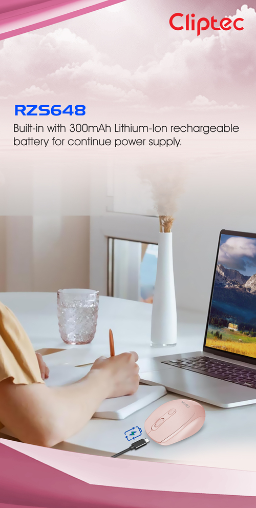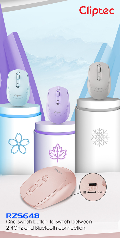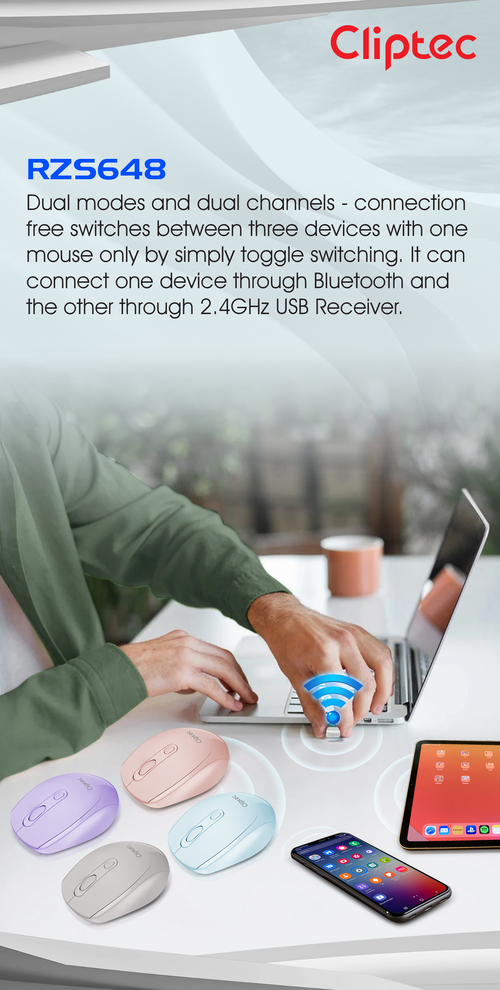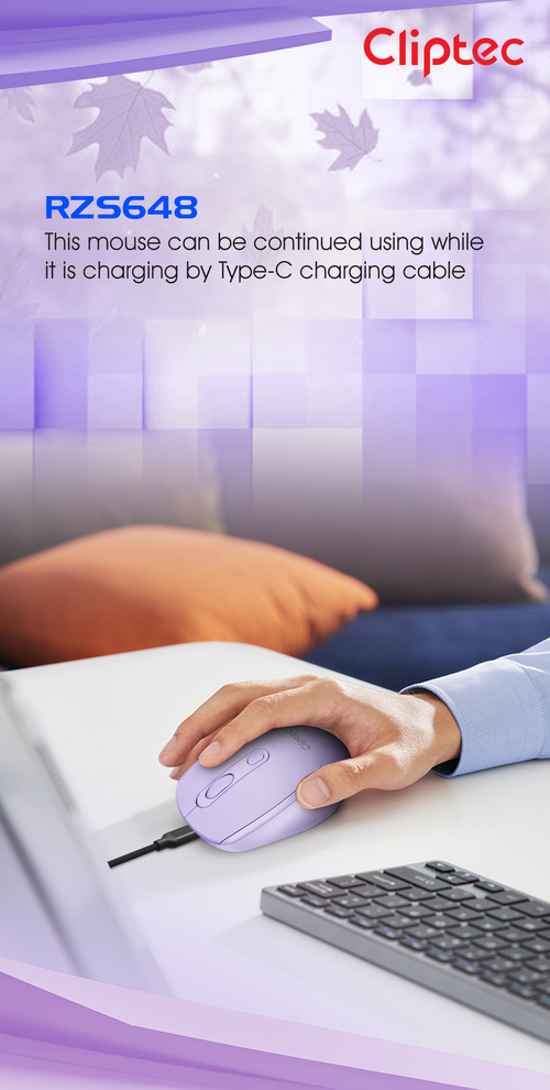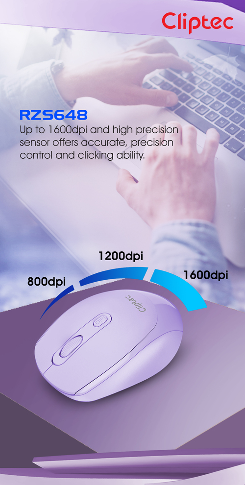 CLiPtec RZS648 Dual Mode 1600dpi Rechargeable Silent Wireless Mouse provides great cursor control for browsing documents or Internet pages. The contoured shape is suitable for either hand and the gently curved sides give your hand the support and comfort you need for all-day use. With 2.4 GHz and Bluetooth wireless transmission is up to 10 meter of wireless range give user more freedom, no interference of movement and more comfort and control than a touchpad. Cursor speed is adjustable by the top speed-switching button, one touching to switch between 800/1200/1600dpi, a perfect functionality for wide screen users having the full speed control over the cursor.